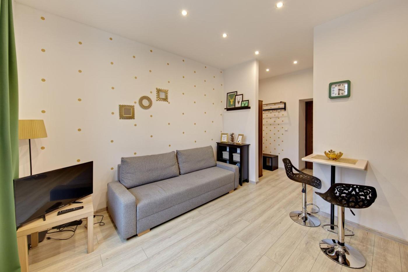 Studio. Offering free toiletries, this studio includes a private bathroom with a walk-in shower and a hairdryer. The well-equipped kitchenette features a stovetop, a refrigerator, kitchenware and a microwave. The studio offers a washing machine, a private entrance, a tea and coffee maker, a flat-screen TV with cable channels, as well as ancourtyard view. The unit offers 1 bed. Studio - 2 osobowy. Powierzchnia pokoju ok.: 21 mkw. ;